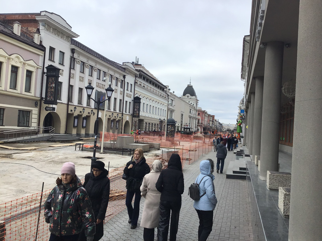 Пошли прогуляться по городу. Решили пройтись по пешеходной улице Баумана, которая приходит к Кремлю. Все прекрасно, но эту улицу всю раскопали, реставрируют к очередным мероприятиям
